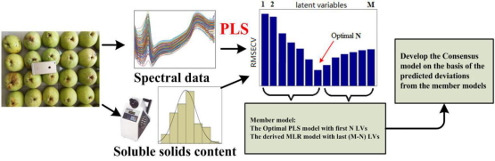 云和雪梨作为浙江著名的地方名果,具有个头较大(果径10-18cm、重量500~1200g)、果梗较硬、皮质较软的特点,对光谱检测模型的要求较高。本论文采用基于均方根误差优化的共识模型对云和雪梨的可溶性进行检测,有效降低了检测误差。本成果所提出方法对大宗水果(如苹果、梨子等)的快速准确检测提供了一种有效数学模型,为优级水果筛选给出了一种新的解决方案和思路。