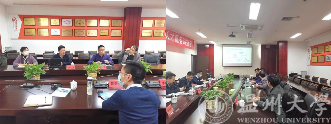 3月26日,温州大学智能锁具研究院(以下简称温智锁院)院长阮秀凯一行人赴位于台州市椒江区的浙江大学台州研究院(以下简称浙大台州院)走访调研。浙大台州院副院长武建伟、余勇刚和办公室主任郑军博士等相关领导热情接待并开展座谈交流。