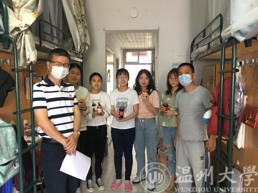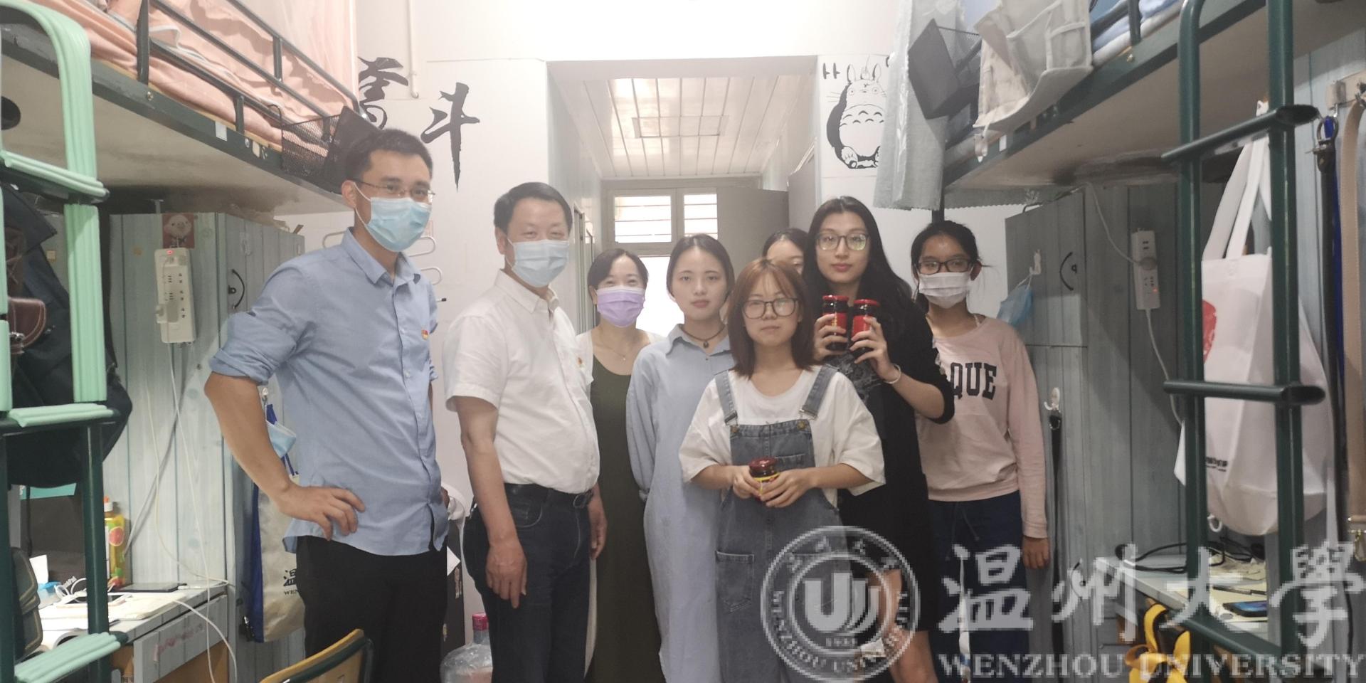 打开宿舍门,迎来的是一张张惊喜的脸庞,教工党员及班主任,一方面向同学们询问了假期生活和学习状况,另一方面也询问了开学返校之后学生们的整体状况,叮嘱他们在校期间要做好防护,理解并遵从学校疫情防控的各项规定,返学并不意味着疫情防控的结束,而更应该提高警惕,高标准严格要求自己。当前是温大疫情管控的非常时期,老师们为了安全虽然都佩戴了口罩,但眉宇之间仍透露出对学生的关爱与呵护,师生们相处融洽,寝室氛围其乐融融,活动渐渐在欢声笑语中结束。