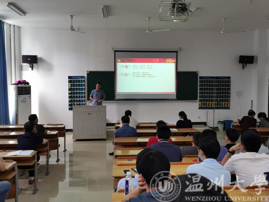 6月10日下午,球探体育比分网 全体教职工政治理论学习会在1B402召开,这是疫情之后,球探足球 教职工第一次线下学习会,球探足球 党委书记李方强做2020年全国两会精神解读。