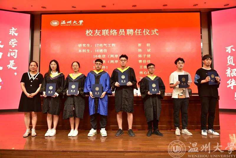 接着进行校友联络员聘任仪式,由院党委副书记曾蓓蕾为七位班级校友联络员颁发了聘书。