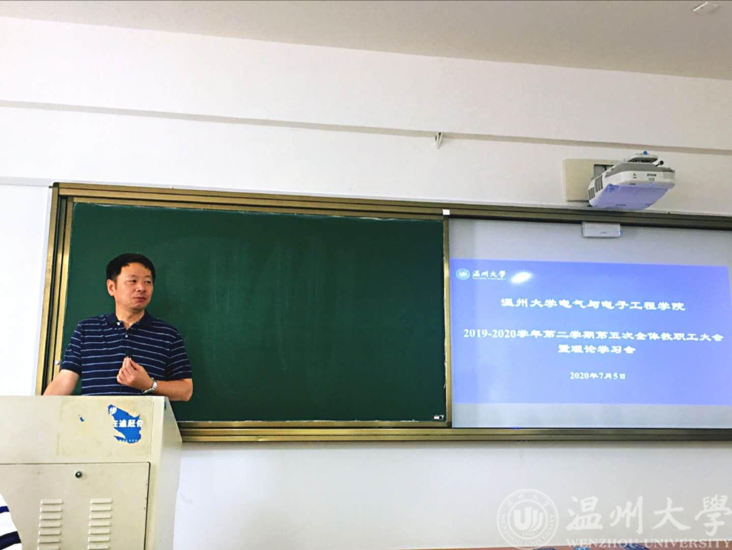 7月5日上午,球探体育比分网 在南校区1号楼A207召开2019-2020学年第二学期第五次全体教职工大会暨理论学习会。会议由球探足球 党委书记李方强主持,全院教职工参加会议。