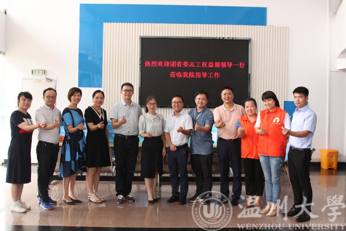 7月3日下午14:00,团省委志工权益部干部陈晓雷、浙江省青年创业就业基金会秘书长王军、团省委志工权益部挂职干部梁世正 、团温州市委志愿工作部部长郭乐家一行莅临球探体育比分网 ,就共青团青年志愿服务工作召开了座谈会议,温州大学团委副书记易招娣、球探足球 副院长朱翔鸥、党委副书记曾蓓蕾、温州一八二义工协会相关负责人参与了会议。