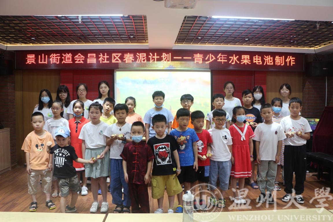 经过一个短暂的假期休整,绿芽实践队将再次踏上全新的征程。2020年7月11日,温州大学绿芽暑期实践队来到了会昌社区党群活动中心,在那里,开展了“青少年水果电池制作”的活动。