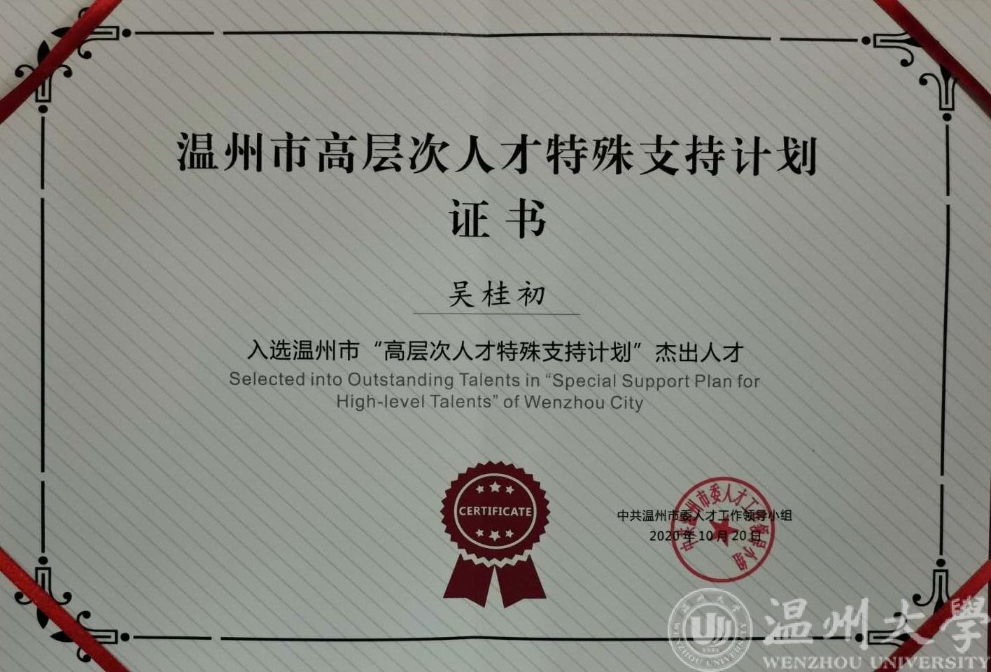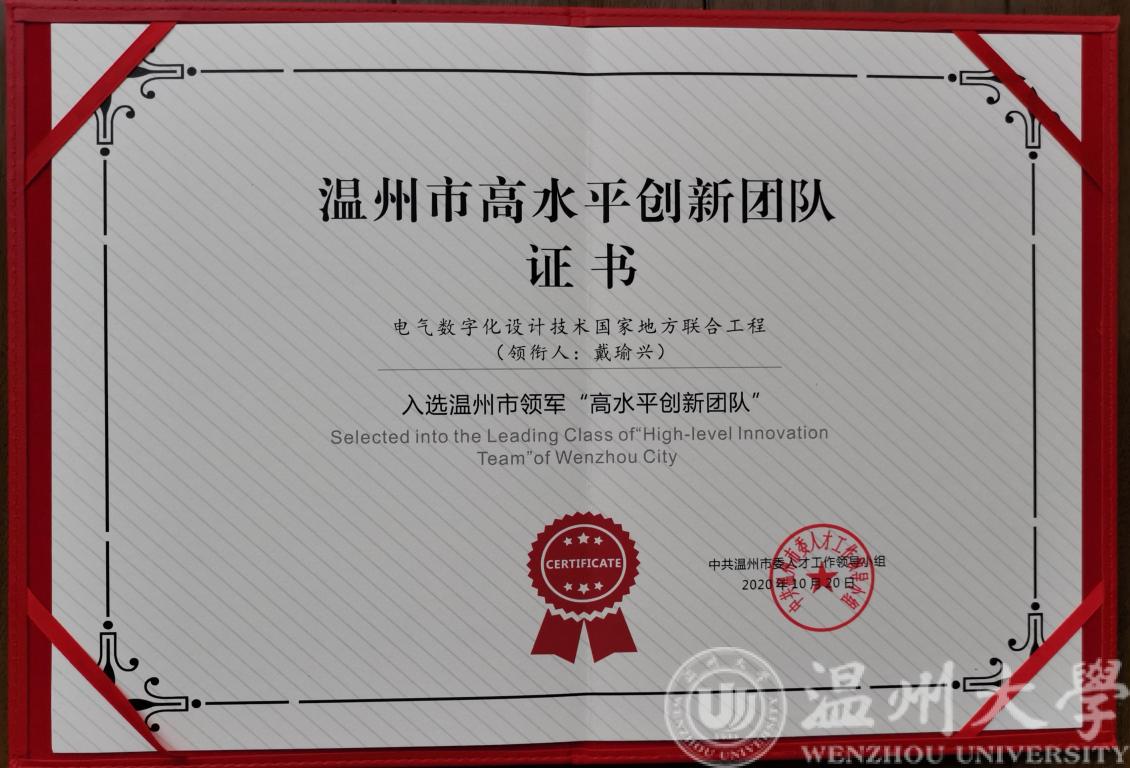 近日,温州市委人才办公布了2020年温州市重大人才工程入选名单,球探体育比分网 戴瑜兴老师带头的电气数字化设计技术国家地方联合工程团队入选2020年温州市领军“高水平创新团队”,吴桂初老师入选温州市“高层次人才特殊支持计划”杰出人才。