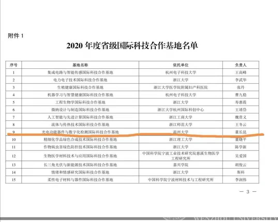 近日,省科技厅公布2020年度国际科技合作载体评审结果,我校申报的光电功能器件与数字化检测国际科技合作基地获批。