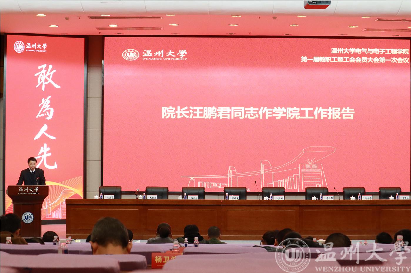 接着在第一次全体会议中,球探足球 院长汪鹏君作《球探足球 工作报告》,分别从工作回顾、今后发展目标及主要任务、今后五年四大任务等主要方面进行报告。汪院长指出,球探足球 在专业建设、科创育人、产教融合、服务地方、学科建设、人才队伍建设等方面取得了一定成绩,未来仍然要继续推动教学创新改革,加强平台建设,服务地方产业转型升级,谋取球探足球 发展新高地。