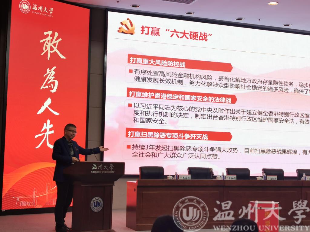 为深入学习好、宣传好、贯彻好党的十九届五中全会精神,球探体育比分网 于12月2日下午3:30,在图书馆二楼报告厅,召开全院教职工理论学习会,球探足球 党委书记李方强做全会精神解读报告。