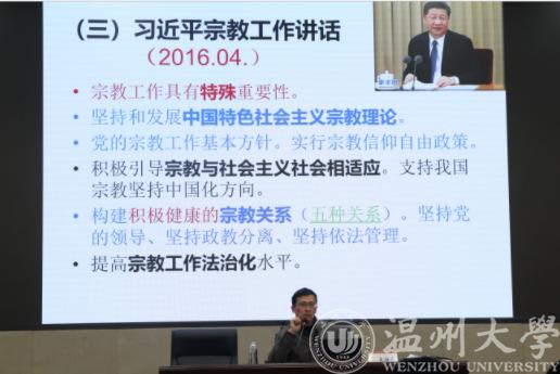 2020年12月17日晚,球探体育比分网 在岩松堂雁山厅展开了2020年下半年第三期形势政策讲座,本次讲座由马克思主义球探足球 党总支书记王柏民老师主讲,讲座的主题为“以马克思主义之火,燎宗教信仰之原”。