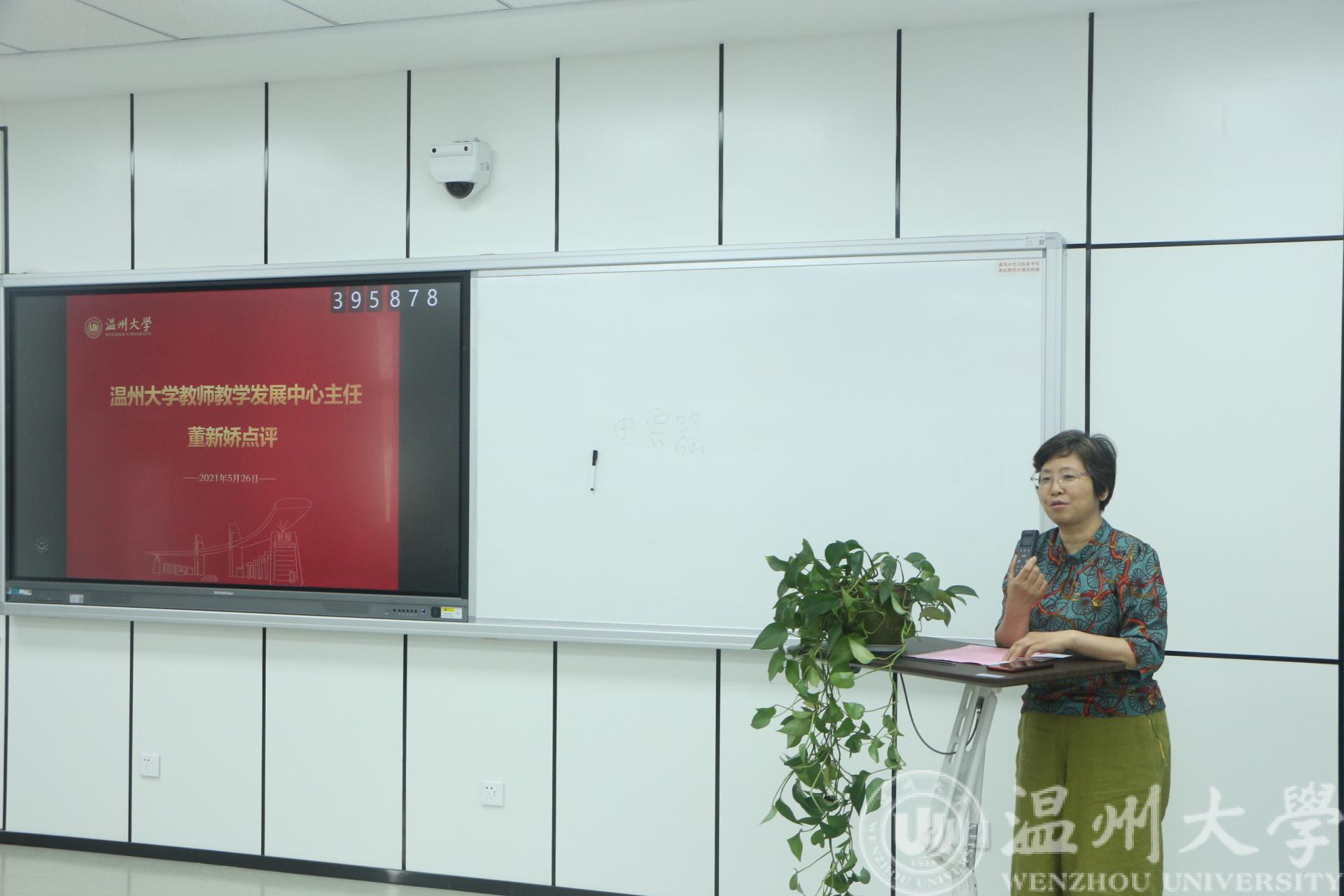 温州大学教师教学发展中心主任董新娇老师宣布比赛结果,并进行了点评,她充分肯定了球探体育比分网 本次教师教学竞赛的各项工作。她认为,电气球探足球 高度重视教师教学技能的提升,连续几年举办教师教学竞赛,组织充分、准备到位;竞赛教师精神风貌俱佳、专业知识扎实、讲解清晰、新的教学理念和教学方法运用合理,并融入了思政元素,极富感染;同时,董老师也从时间掌控、教学设计、教学过程等方面给老师们提出了更加殷切的建议。