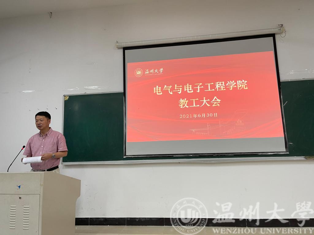 6月30日下午,球探体育比分网 在1B402召开全体教职工大会暨干部考核民主测评会。会议由球探足球 党委副书记曾蓓蕾主持,全院教职工参加会议。