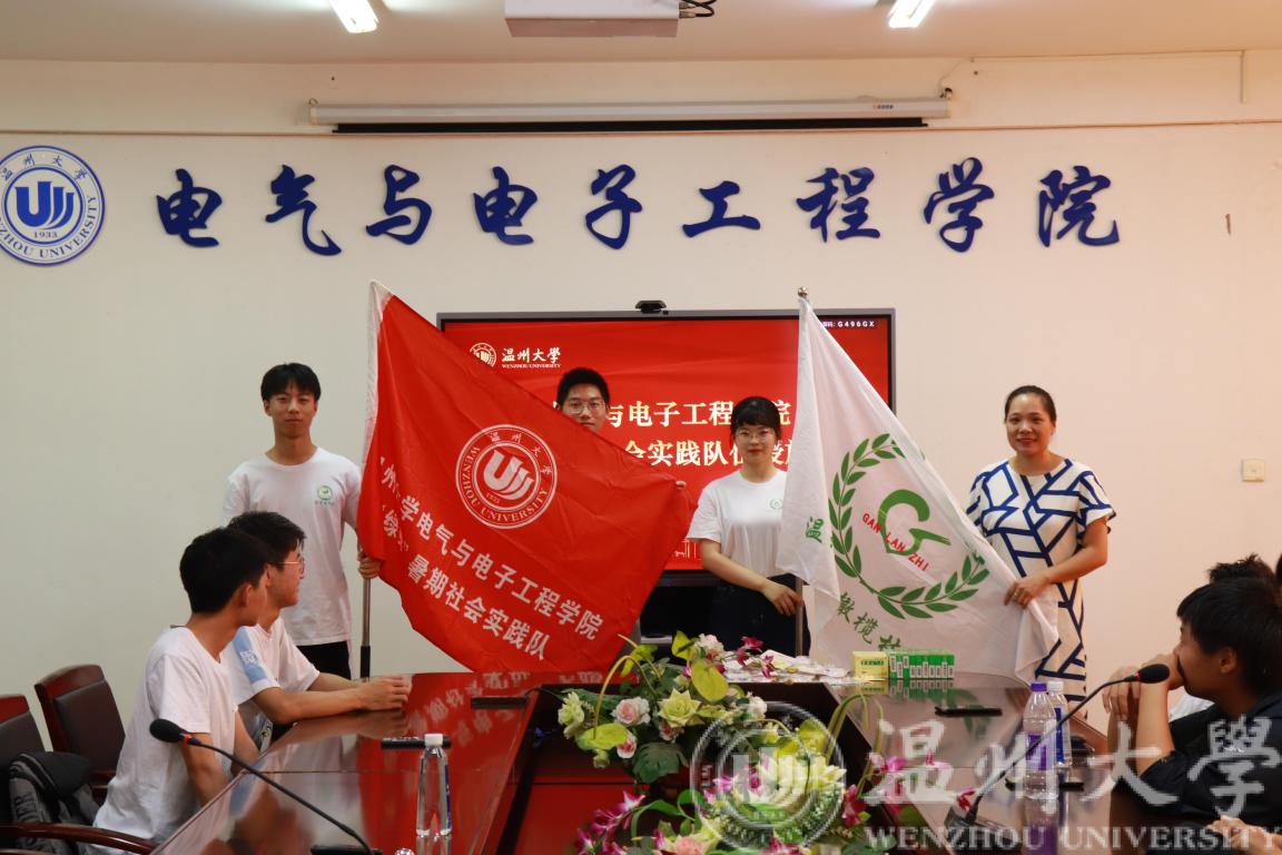 会议伊始,球探足球 党委副书记曾蓓蕾老师分别为球探足球 两支“常规”社会实践队——球探体育比分网 绿芽暑期社会实践队、橄榄枝公益暑期社会实践队授旗。