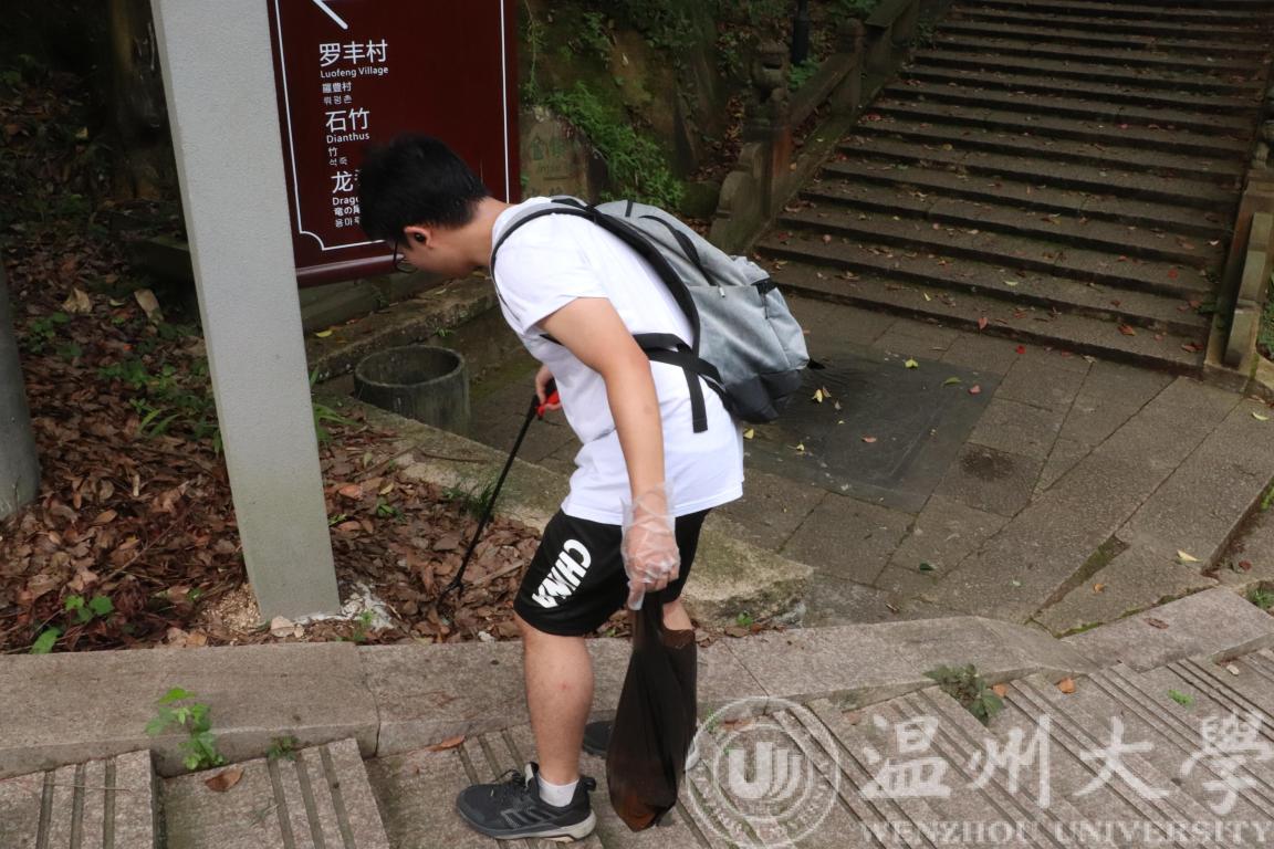 早上8点整,烈日当空,伴随着树枝上的阵阵蝉鸣,全体成员于山脚集合完毕,由负责人分发垃圾架子和垃圾袋,队长林博恒交代活动中应注意的事项以及实践的具体要求。随后全体成员沿着山路,清理途中的垃圾。虽然天气炎热,但成员们活动积极性不减。两两队员分工明确,相互配合,一名同学使用垃圾架,另一名同学携带垃圾袋,共同完成清理工作。上山之路很长,汗水打湿了同学们的衣服,但在成员们的认真清理下,山上路途中的垃圾被打扫得干干净净。随后,到达观景台进行休整,从山顶看着满山秀丽风景,大家都有着不同的感悟,一起交流分享这次活动的心得。习近平总书记说过,“绿水青山就是金山银山”。这美丽的风景需要大家来呵护,而我们本次活动正是以此为主题。随后成员们原路返回,看着干净整洁的道路,大家即使汗流浃背,也十分的满足与开心。最后全体成员在山脚进行合影留念。