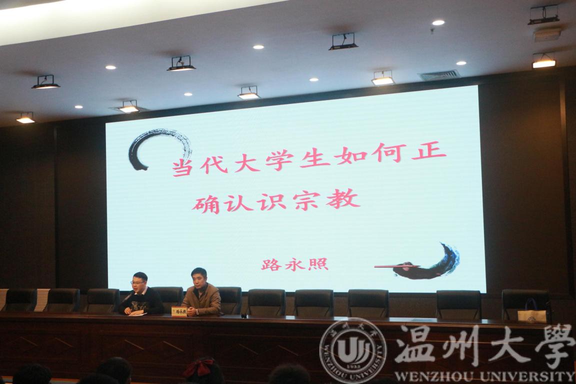 讲座伊始,潘老师介绍了路永照教授的研究方向和基本简历,介绍了此次讲座的基本要点。紧接着,路永照教授正式开讲。路永照教授主要从宗教是什么、党的基本宗教政策、宗教与教育三个方面展开。他向同学们介绍了什么是宗教以及我国宗教的基本状况,深入浅出地帮助学生认清宗教的本质以及了解我国宗教的历史进程。接着路教授着重强调了我党的基本宗教政策和如何正确看待宗教,“共产党员要始终坚持马克思主义宗教观,做坚定的马克思主义无神论者,共产党员绝不能有宗教信仰”,并向同学们指出了我们国家“正确认识党的宗教信仰自由政策、积极引导宗教与社会主义社会相适应、坚持独立自主自办原则、依法管理宗教”的基本宗教政策。在关于“正确认识党的宗教信仰自由政策”这个关键点上,路老师指出:公民有信仰宗教的自由,也有不信仰宗教的自由;有信仰这种宗教的自由,也有信仰那种宗教的自由;在同一宗教里,有信仰这个教派的自由,也有信仰那个教派的自由;有过去不信教而现在信教的自由,也有过去信教而现在不信教的自由。路老师的讲座深入浅出、引经据典、风趣幽默,不仅让大家对宗教有了基本的认识,对于处理宗教活动和宗教与教育的关系有了基本的判断和了解。