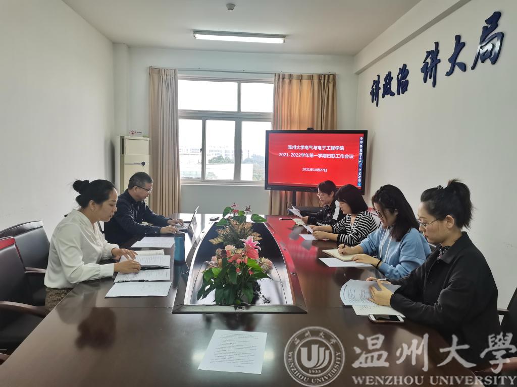 10月27日上午,球探体育比分网 妇联在1A504会议室召开2021年下半年妇联工作会议,院党委书记李方强、工会主席潘海鸥及球探足球 妇联执委参加会议,会议由妇联主席曾蓓蕾主持。