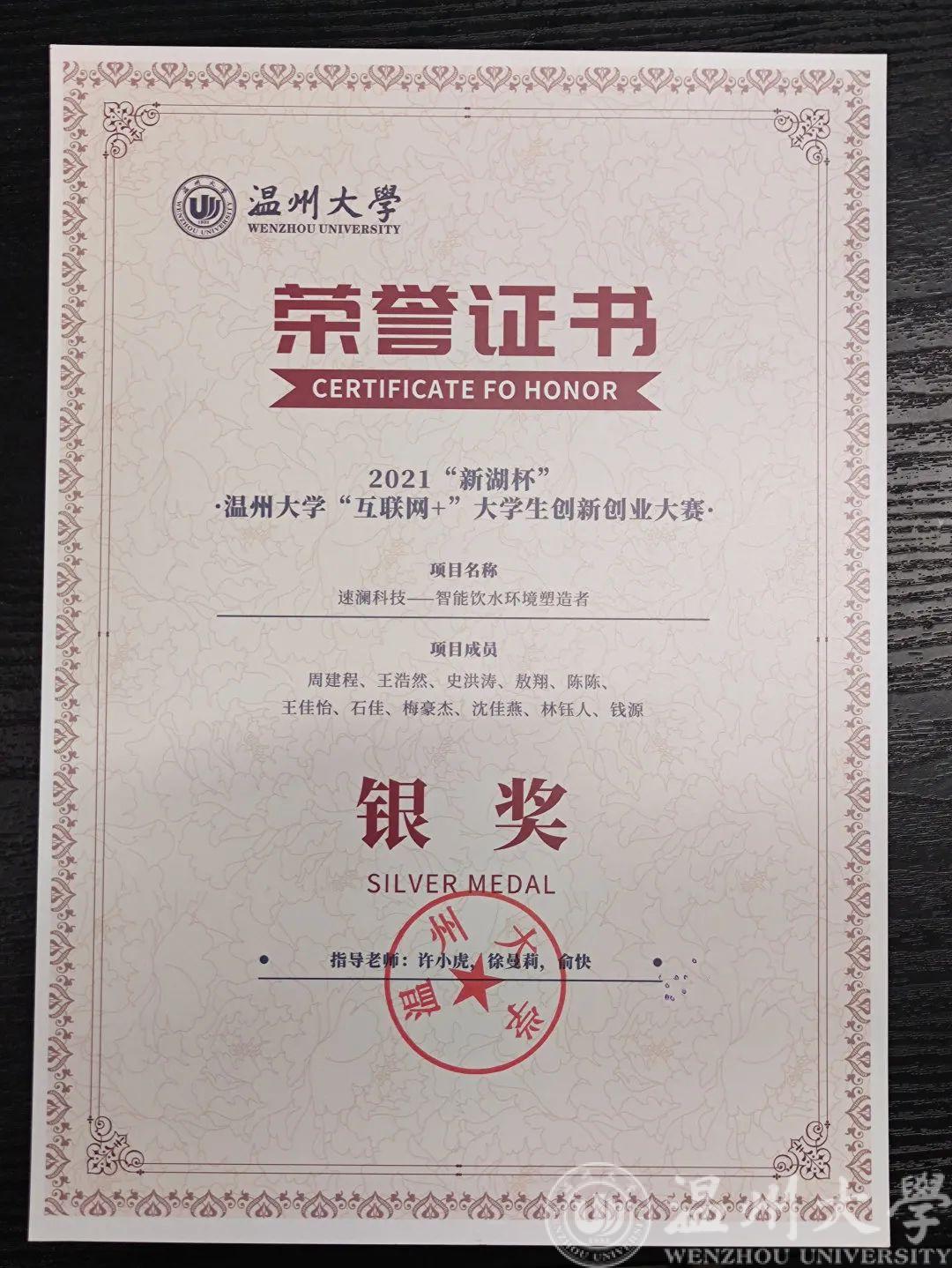 一年来,周建程同学不仅带领团队完成了速澜科技有限公司在温州市瓯海区国家大学科技园的入驻,也开始同伙伴们一同探索未来的更多可能。为了响应国家“十四五”规划中“坚持创新驱动发展,全面塑造发展新优势”的要求和进行碳达峰和碳中和的号召,这个充满活力的研究生团队将努力研发新工艺,将科研跟实践结合起来。为祖国做出青年人应当做出的贡献!