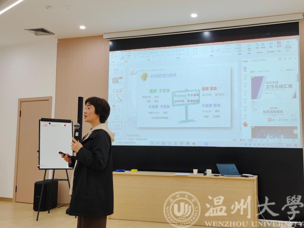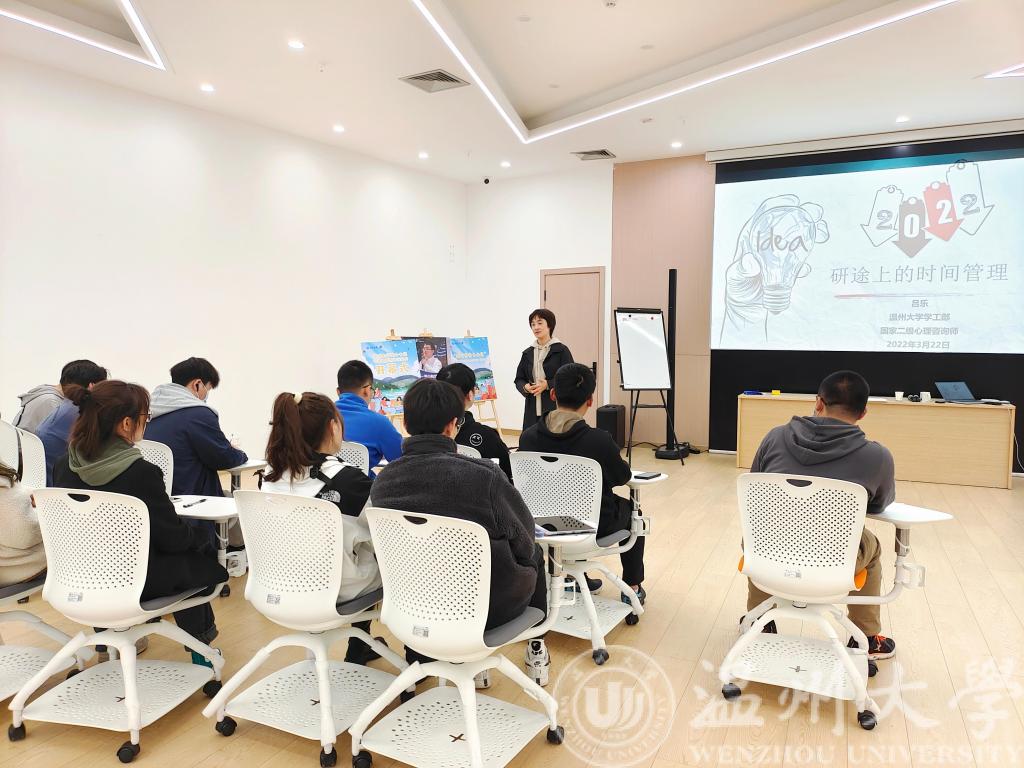 为帮助球探体育比分网 考研学子合理规划考研时间,提高学习效率,帮助学生掌好考研的“舵”,以免梦想小船“偏航”,3月23日晚,球探体育比分网 特邀学生工作部副部长,国家二级心理咨询师吕乐在大学生活动中心幸福工坊为2023届考研学子带来“幸福时间管理”讲座。