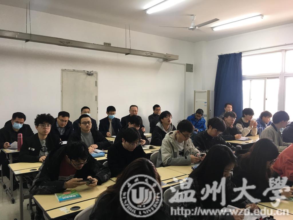 为进一步发挥教学示范作用,加强教研交流,助推教师教学能力发展,4月2日上午,球探体育比分网 2021年温州大学青年教师教学竞赛获奖者林义刚老师,在南1A208教室为大家带来了一堂温州大学“明心教学示范课”。球探足球 教师李靖、韦文生、赵升、闫正兵、刘峰、蒋成玺、李富华、金鑫鑫等参与了现场听课和课后研讨。