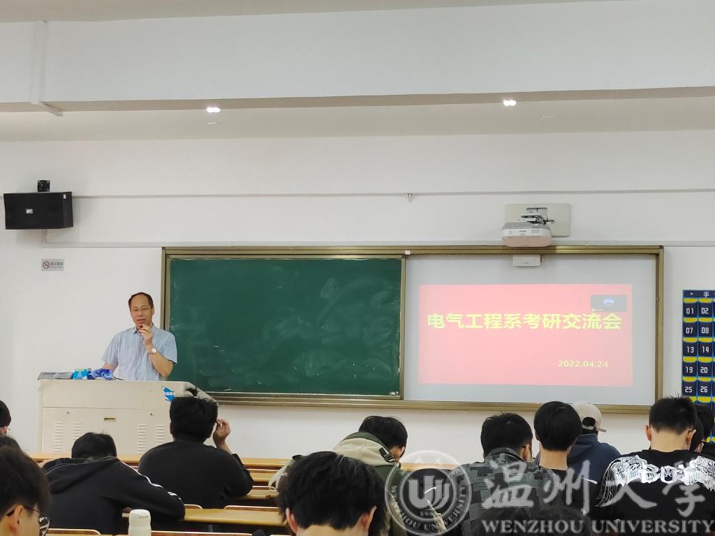 会议伊始,电气工程系主任吴平老师对2022年球探体育比分网 电气系学生考研情况进行介绍,并建议同学们在院校选择上除了各类高校外还可以考虑报考研究所及研究院;而既然选择考研,就要一鼓作气坚持下来,不要半途而废。