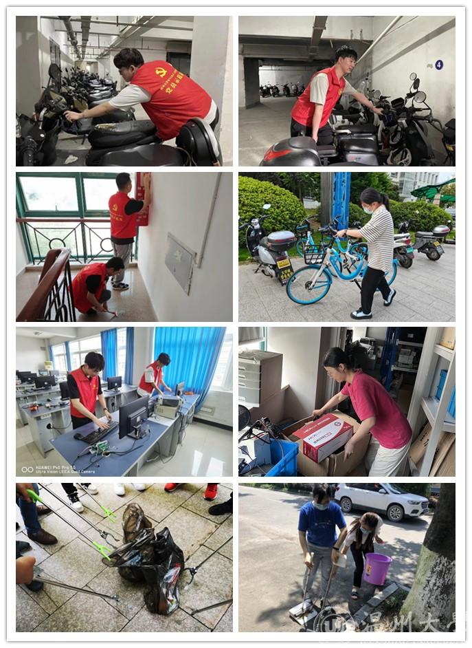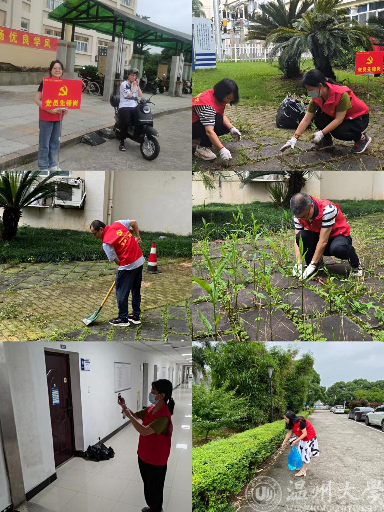 通知指出,“各基层党支部要结合工作实际,组织发动支部党员走到第一线、沉到最基层,集中开展‘环境大整治、行为大示范、岗位大认领、秩序大维护、政策大宣讲’等五大专项行动。”球探足球 积极响应,组织师生党支部率先参与。研究生第二党支部针对学校“产教融合”孵化园区内的卫生、安全问题进行专项清理,包括园区消毒、舍楼小广告、地面口香糖等;球探足球 智能锁具研究院党支部安排党员志愿者有序分工,带好卫生用具走上街头,重点对道路垃圾、杂物等逐一清理,对墙面广告、卫生死角进行彻底清扫;电子系教工党支部全体党员则是带着卫生工具攀登大罗山,一路清理大罗山上的垃圾,保护温州城市绿肺。