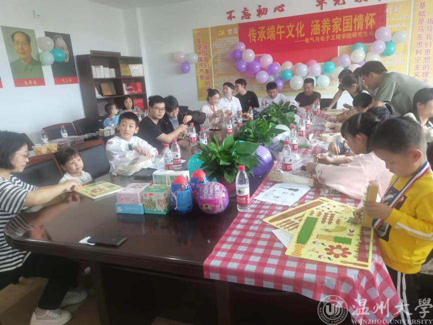 本次活动主题围绕传承端午文化,涵养家国情怀开展,活动一开始,老师们和小朋友们就熟练的开始制作手工龙舟,然后是缝制端午香包比赛,不愧是工科老师,动手能力非常强,一会就制作完成了。最紧张刺激的就是到了蛋王PK赛环节,小朋友们到处寻找竞争对手。活动进行的热热闹闹,最后老师们与小朋友们一起品尝浓情粽。