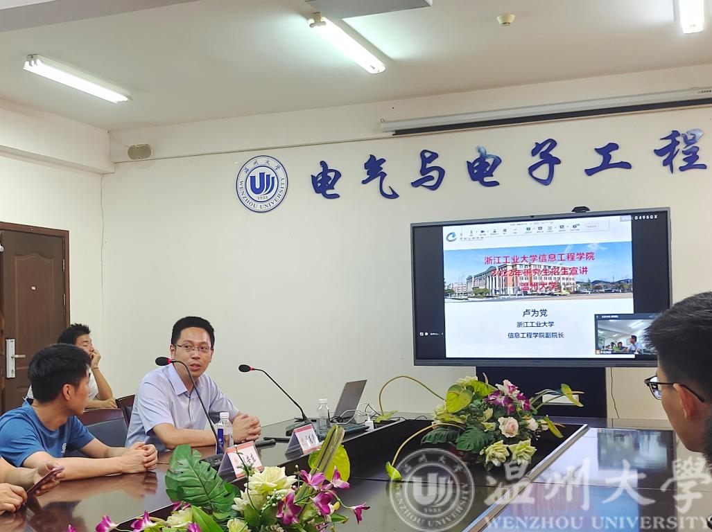 7月26日上午10:00,浙江工业大学信息工程球探足球 2022年研究生招生宣讲会在球探体育比分网 1A-502召开。本次宣讲会由浙江工业大学信息工程球探足球 副院长卢为党教授及控制工程学位负责人刘安东副教授担任主讲,球探体育比分网 党委副书记曾蓓蕾老师主持,2019级有意向报考的同学参与。