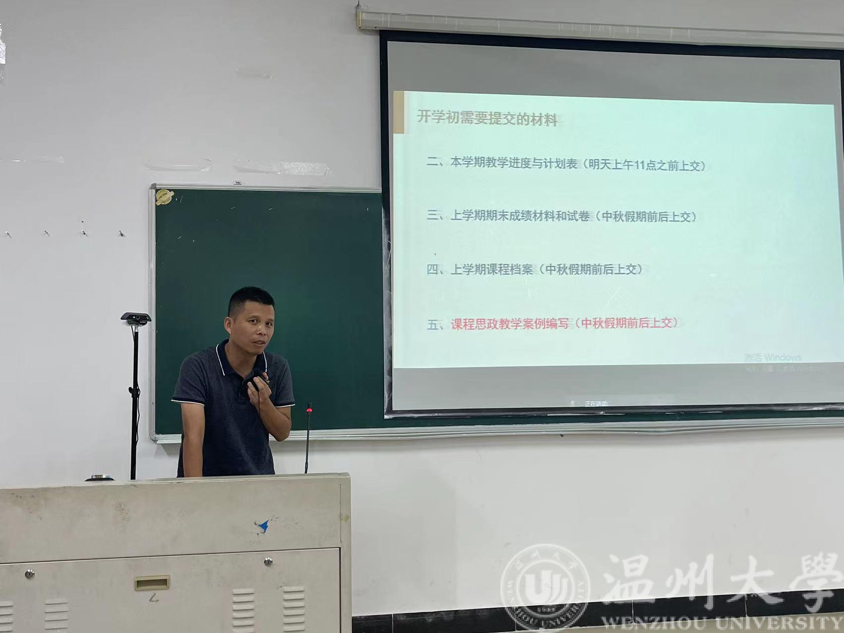 随后陈孝敬院长就新学期教学方面工作进行讲话,包括开学初需要提交的材料、毕业论文抽检、第一周线上教学情况通报等。