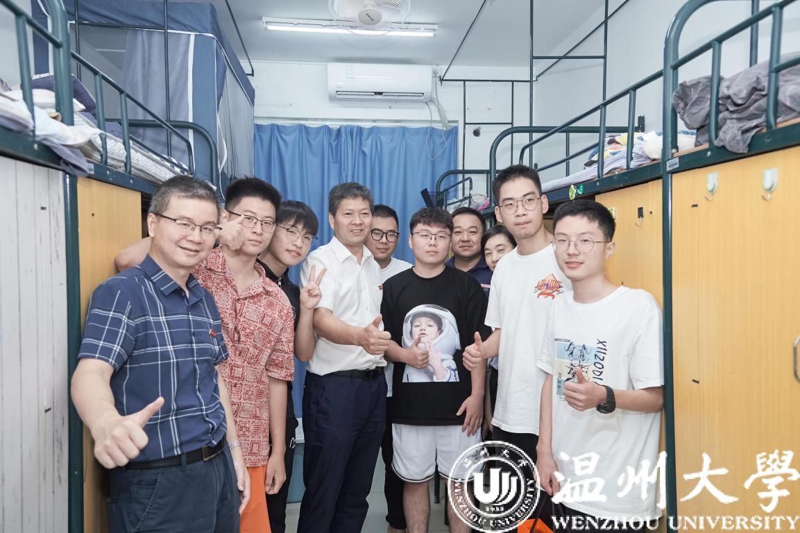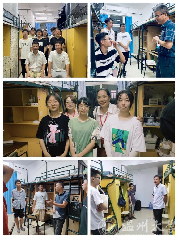 9月6日晚上,球探体育比分网 院长汪鹏君,党委书记李方强、副院长朱翔鸥、副院长陈孝敬、副院长朱海永、党委副书记曾蓓蕾,在全体辅导员和学生干部的陪同下,一起深入新生寝室,为2022级的同学们送去了温暖的问候与祝福。在走访的过程中,老师们亲切地与同学们打招呼,并询问同学们来自哪里,衣食住行、生活是否习惯等方面的问题。同学们纷纷表示正在积极地适应学校的生活环境,适应大学生活,转变身份。