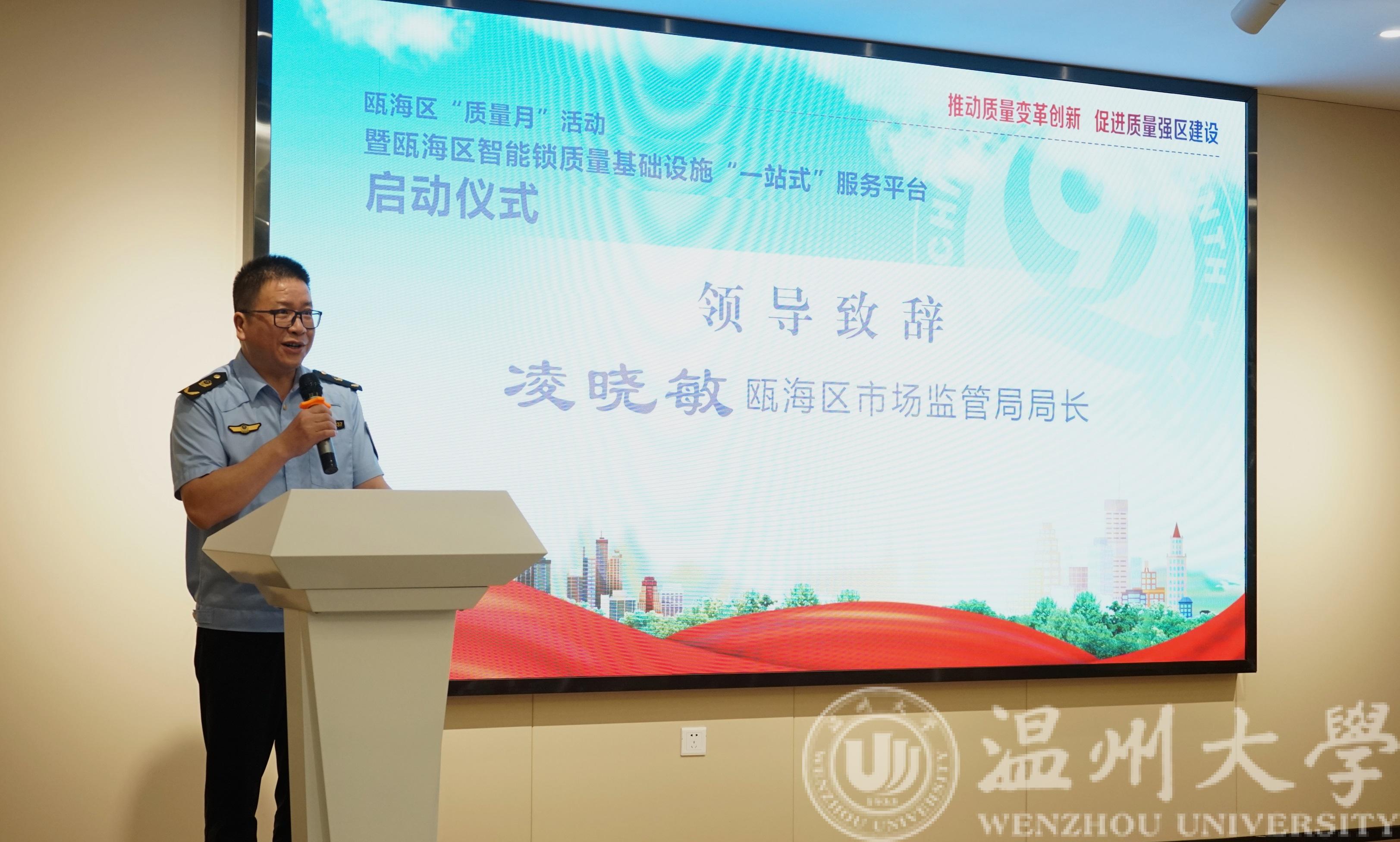 瓯海区市场监督管理局局长凌晓敏、副局长黄节棋,瓯海区科技局副局长周肖瑜,温州大学智能锁具研究院院长阮秀凯,瓯海区智能安防产业协会会长詹显光、党支部书记郑国华出席仪式。