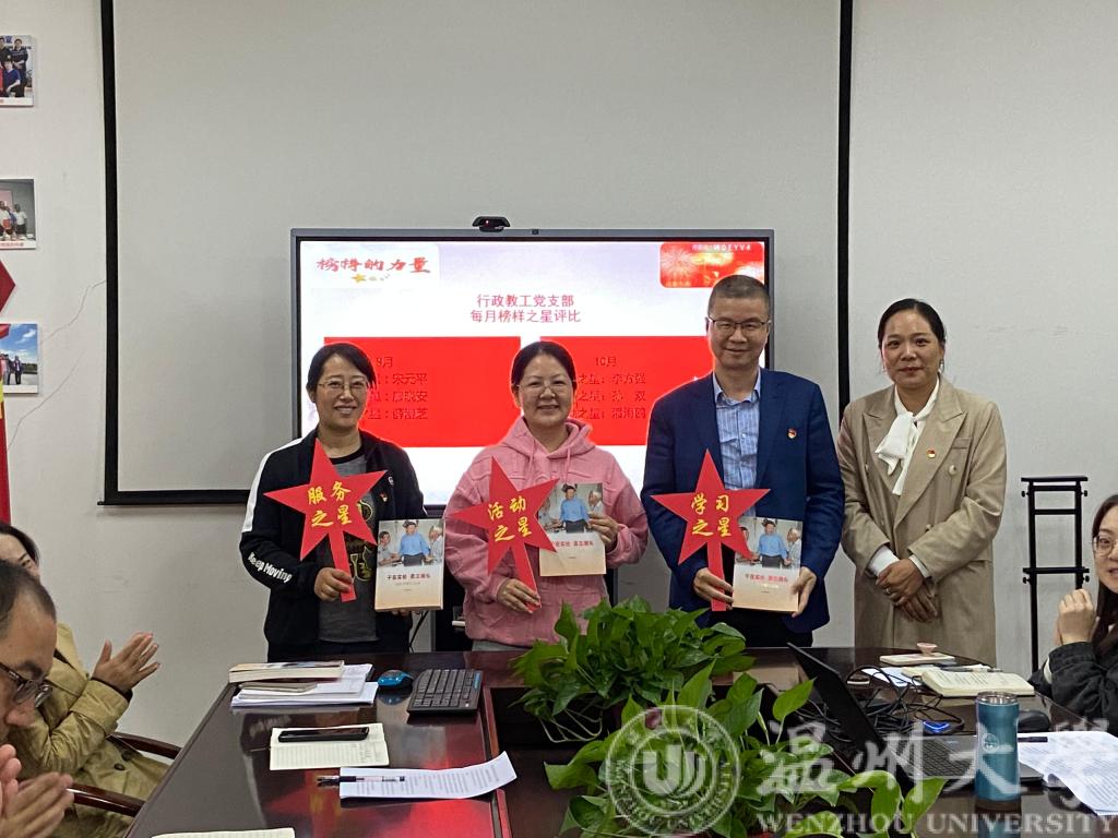 为鼓励和表彰优秀党员,经支委会讨论,支部每月评选学习之星、活动之星、服务之星各1名,并给予表彰。此次支部大会,对9月和10月评选出来的优秀党员给予了鼓励和表彰。