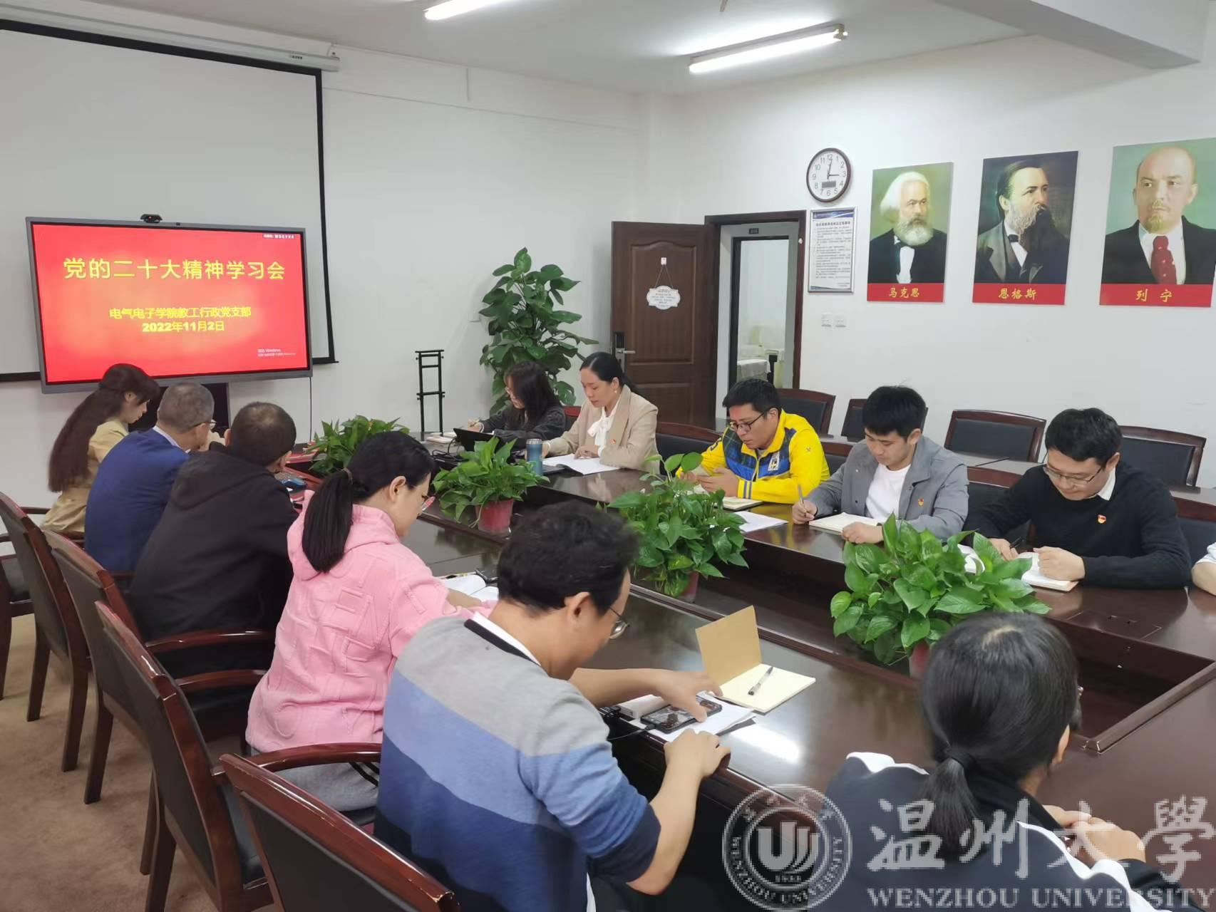 行政教工党支部组织召开党的二十大精神专题学习会,会议由支部书记曾蓓蕾主持。