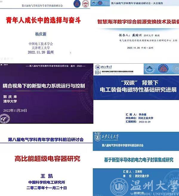 2022年11月19日至21日,在国家自然科学基金委员会电气科学与工程学科支持下,由中国电工技术学会、浙江省科学技术协会、温州市人民政府联合主办,温州大学、中国电工技术学会青年工作委员会、温州市科学技术协会承办的第八届电气学科青年学者学科前沿会成功召开。会议旨在促进电气及相关学科青年学者之间的学术交流,广纳真知灼见、广聚学术资源、广交学术人才,开阔视野、激励创新,为未来的学术研究和合作寻求新思路、拓展新途径,为电气工程学科的蓬勃发展贡献智慧和力量。来自我国高校、科研院所的专家、青年学者共4000余人线上参加会议。