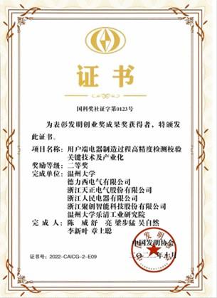 由球探体育比分网 陈威、舒亮、梁步猛、吴自然、章上聪等老师完成的“用户端电器制造过程高精度检测校验关键技术及产业化”项目获2022年度发明创业奖•成果奖二等奖。