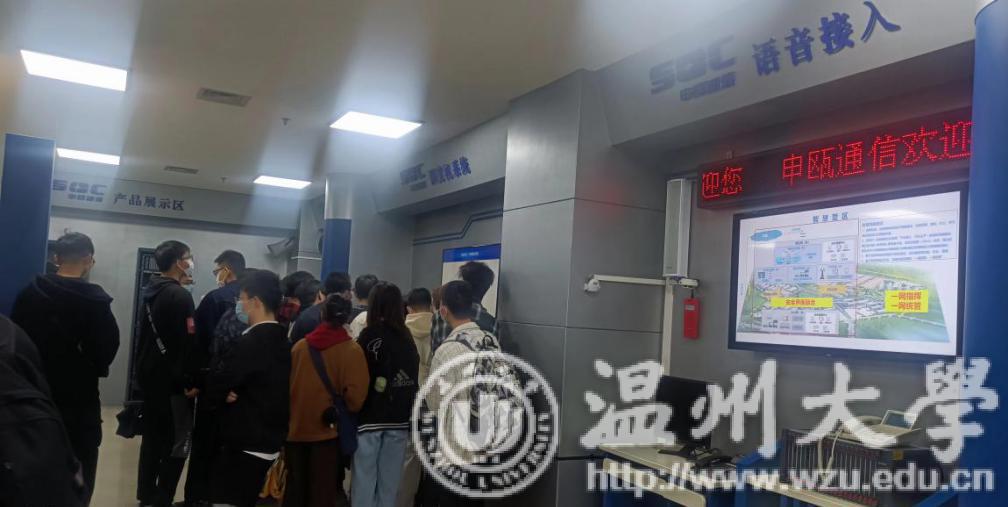 申瓯通信设备有限公司林经理先后热情地接待电科和电信专业学生。同学们分批参观了公司展览大厅、SMT生产车间、装配测试车间,对程控交换产品、调度产品的生产和应用有了直观的认识。最后,同学们在会议室与公司经理、工程师进行了深入交流,咨询了公司产品技术细节、业务模式、薪资待遇、用人需求等问题。
