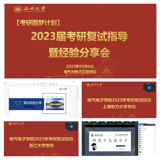 如今,已成功上岸的优秀学子们也接住了来自学校的考研“接力棒”,在复试流程、考核形式、复试要点、导师选择等方面都给予耐心细致的指导,将对母校的爱传递给学弟学妹们。近期,球探足球 已邀请来自温州大学、浙江大学、上海电力大学以及杭州电子科技大学的数十位优秀校友开展复试指导和经验分享会,受益学生近百人次。