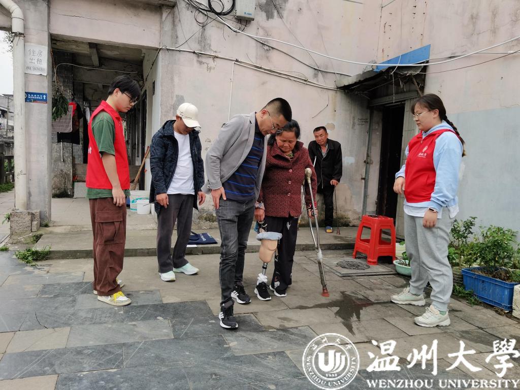 2020年,温州大学单脚鞋银行志愿服务团队在一次活动中,意外结识了曾叔夫妇,了解到他们不幸的遭遇,决心要帮一帮他们。该志愿服务团队多次上门看望曾叔夫妇,为他们送去各季单脚鞋,米、面、油等生活用品。去年的全国第32个助残日当天,团队成员还来到曾叔夫妇的家中,在看望慰问他们的同时,还给曾叔夫妇家中的墙壁贴上了贴纸,打扫整理房间。多次交流中,团队成员了解到曾叔夫妇有想安装假肢的愿望,但因收入微薄,愿望一直难以实现。