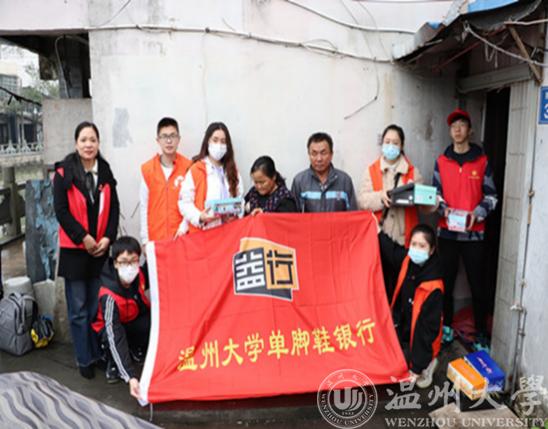 2017年,温州大学“单脚鞋银行”志愿服务队成立。“单脚鞋银行”志愿服务队首先通过对接鞋企,将鞋企准备废弃的样品鞋“收储”,进行分类“储存入库”。然后寻访有用鞋需求的贫苦单脚鞋残障人士,将“收储”的鞋子免费发送给他们。因为受地域和团队人员精力的限制,多数时候,“单脚鞋银行”志愿服务队的师生们通过对接全国各地的志愿服务团体,将银行仓库里“收储”鞋子发送到全国各地的单脚鞋残障人士手里。同时,团队成员通过建立单脚鞋网站、微信群、QQ群,开通微视频账号等,为全国各地个人申请单脚鞋以及社会团体之间的合作提供平台,同时通过网络平台了解残疾人士的反馈信息和心声,形成闭环式公益。