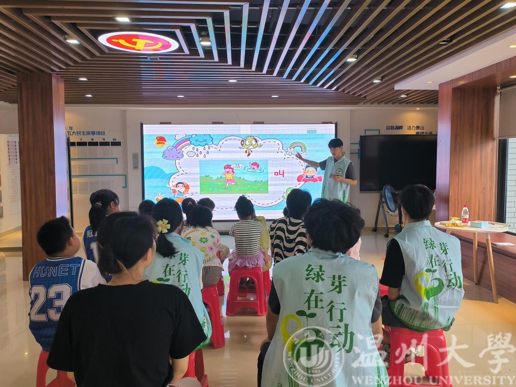 据悉,为推进引导和帮助广大青年学生上好与现实相结合的“大思政课”,在社会课堂中受教育、长才干、作贡献,在观察实践中坚定信念听党话、跟党走,2023年暑假温州大学指导在校大学生开展了“双百双千”行动专项团队、美育乡村暑期社会实践队、创新专项团队和“防溺水”专项示范团队等近百余只暑期实践队伍,5000多名大学生前往温州的各个县(市、区)开展暑期社会实践活动,球探体育比分网 绿芽暑期社会实践队就是其中一支。球探体育比分网 绿芽暑期社会实践队秉持着“守护绿城,呵护芽心”的实践宗旨,深入社区,以环保知识宣讲、防溺水安全教育、环保小游戏、手工DIY等方式开展暑期社会实践活动,旨在为孩子播下一颗绿色的种子,呵护新芽的成长。