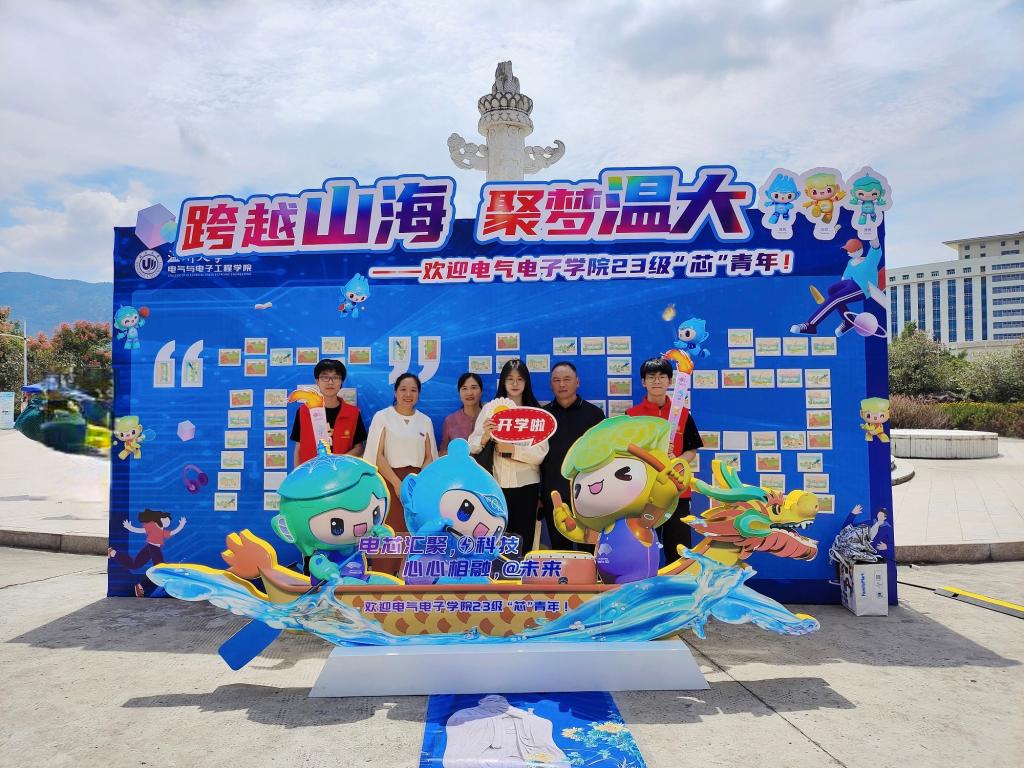 充满科技风的“充电赛道”,集芯片元素和电路图组成的科技之光“芯”青年愿望墙,彰显了球探体育比分网 电气工程及其自动化、电子科学技术和集成电路的专业特色,与球探足球 培养新时代科技创新人才的方向不谋而合;而特别定制的龙舟造型,呼应了温州作为第19届杭州亚运会龙舟主场地,展示了温州中国龙舟文化之乡的深厚底蕴。昂首向前的龙舟上载着杭州亚运会的吉祥物琮琮、宸宸、莲莲,他们蓄势待发,寓意着青年学子朝气勃勃、精神焕发。
