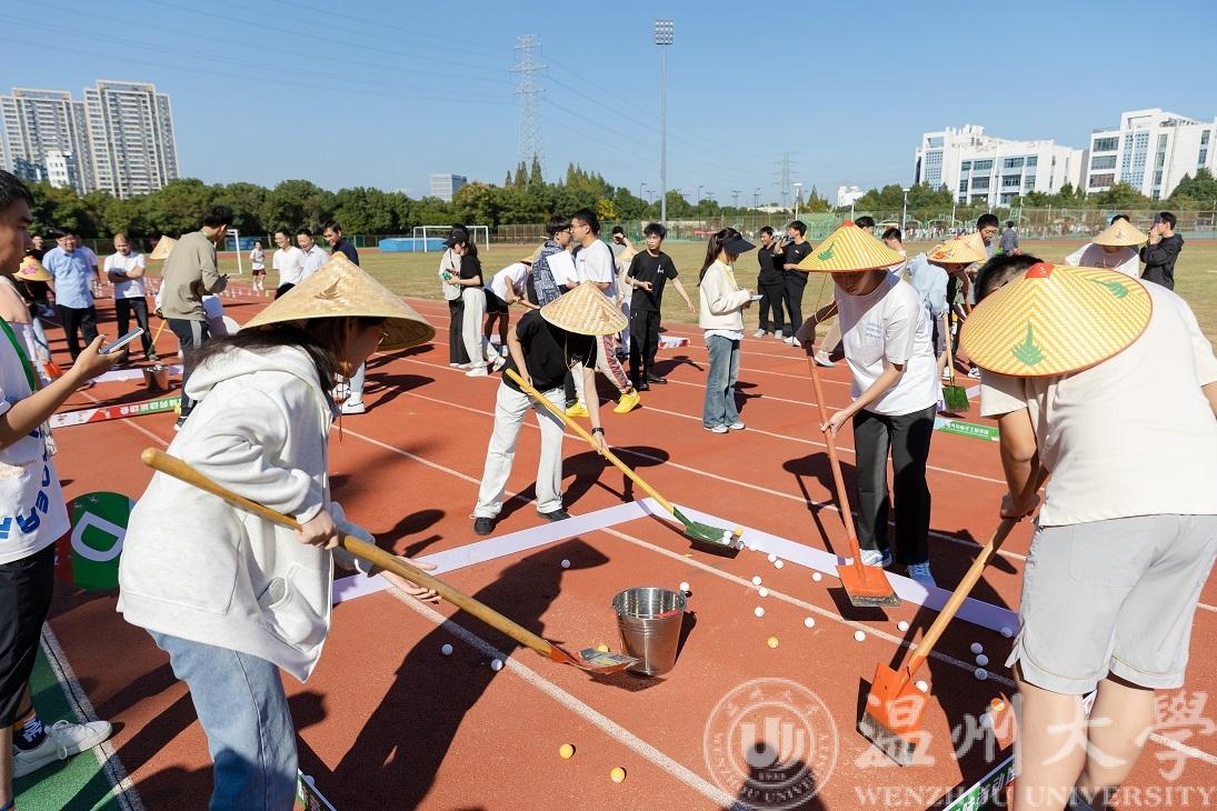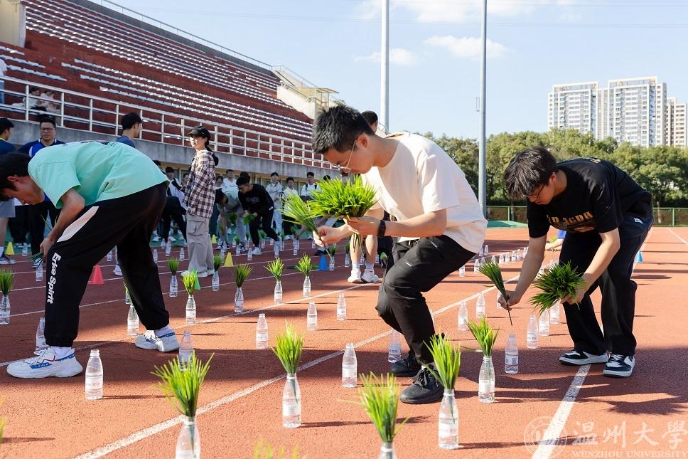 阳光适运动,师生同欢乐。近日,一场将劳动和趣味相结合的师生运动会在温州大学南校区运动场顺利举行。此次,师生劳动趣味运动会以“田园劳作”为主题,借鉴了农民整地、播种、浇水、收获的工作流程。