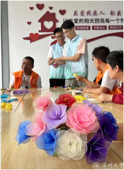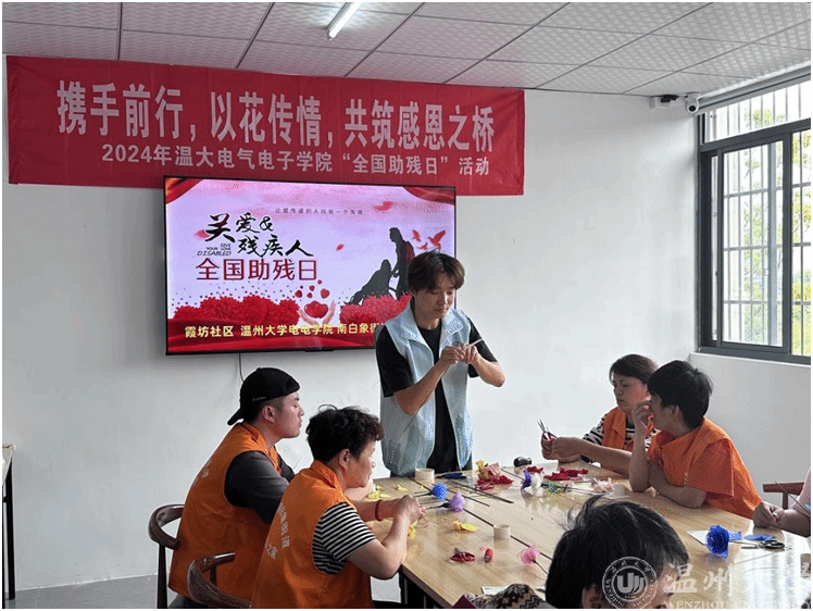 为积极响应国家对残疾人的关怀和支持,近日,温州大学单脚鞋银行志愿服务项目的成员们和球探体育比分网 的志愿者们来到霞坊社区残联之家,一同开展“携手前行,以花传情,共筑感恩之桥”全国助残日活动。