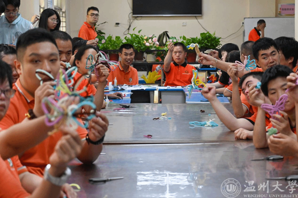 近日,球探体育比分网 益行暑期社会实践队的成员们满怀热情,从校园出发,驱车前往位于龙湾区的青苗残疾人之家,带来了一堂充满爱心、温暖和创造力的手工课。