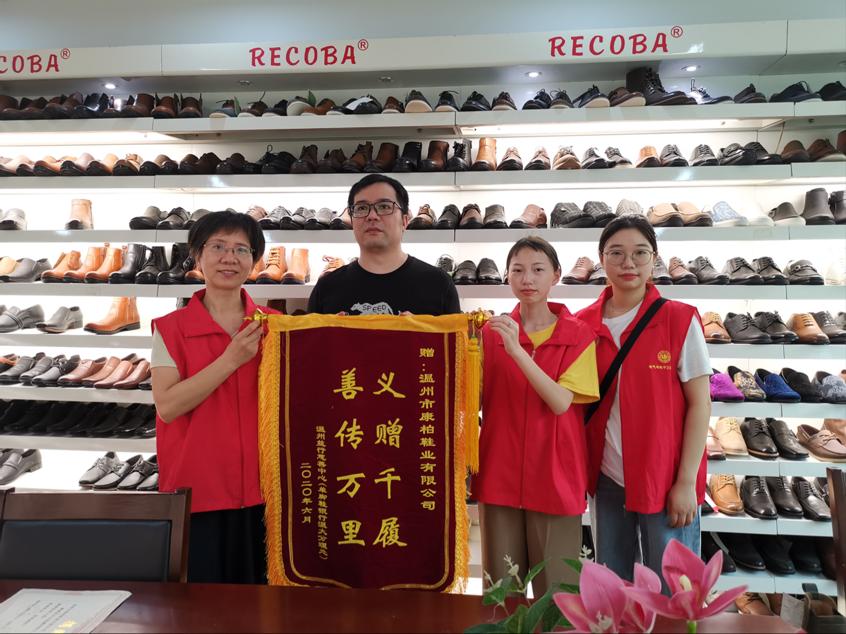 6月13日,温州大学“缘来单脚鞋”项目组成员任奕沛、钟艺和温州一八二义工协会党支部书记朱阿姨,一同前往意万达鞋业有限公司、温州市康柏鞋业有限公司和温州市千金黎鞋业公司等六家知名鞋企,围绕如何提高赠鞋效率和服务质量进行了深切的交流,并赠送锦旗和证书,对他们的赠鞋义举表示感谢。