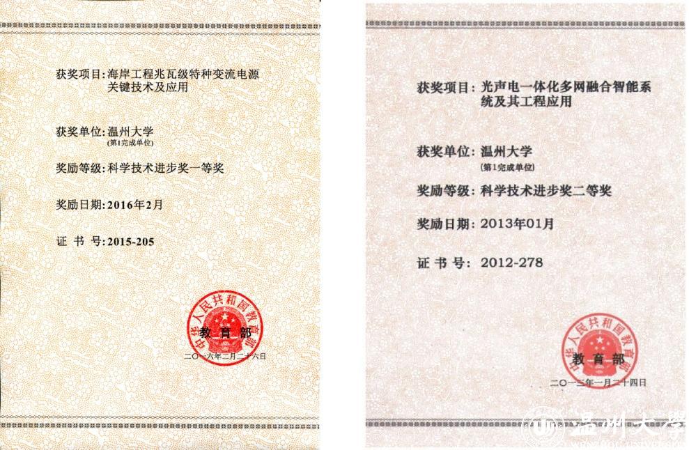 “实验室是一个推动我国海岛及港口特种供电电源发展的科研平台。”戴瑜兴举例介绍,实验室里的兆瓦级变流关键技术研发平台专门应用于大型港口,研发团队通过电源装备来提升港口与船厂落后的供电技术,大大减少环境污染。戴瑜兴等人在这个领域精耕细作20年,终于实现港口与船厂特种变流电源装备研制的全面突破,完成了“海岸工程兆瓦级特种变流电源关键技术及应用”。据估算,以一艘1.5万吨的轮船为例,该技术一年可节能30%左右。该项成果因此荣获国家教育部科学技术进步奖一等奖,成功实现温大在该奖项一等奖零的突破。