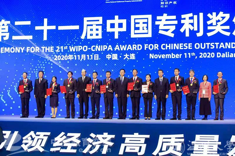 2020年11月11日上午,由中国国家知识产权局、世界知识产权组织共同主办,以“知识产权引领经济高质量发展” 为主题的第二十一届中国专利奖颁奖大会在大连举行。会上30项中国专利金奖受到表彰,球探体育比分网 戴瑜兴教授前往领奖。国家知识产权局局长申长雨,世界知识产权组织中国办事处主任刘华,辽宁省委副书记、省长刘宁等领导出席会议。世界知识产权组织(WIPO)总干事邓鸿森发表了视频致辞。