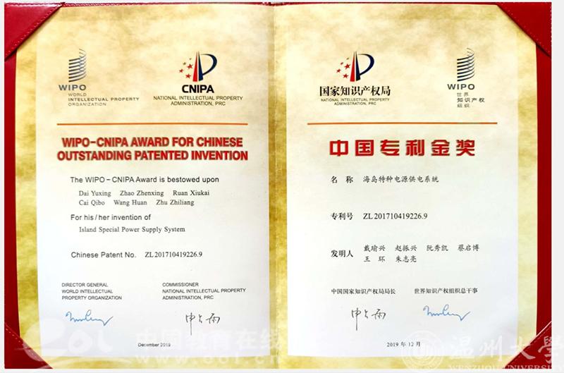 以温州大学为专利权人、戴瑜兴教授为第一发明人的发明专利“海岛特种电源供电系统”凭借其国际领先的技术水平、显著的经济与社会效益,获第二十一届中国专利金奖。该奖项是温州大学首次获得中国专利金奖,也是温州市首次获得该项殊荣。“海岛特种电源供电系统”是戴瑜兴教授科研团队历经十多年联合攻关的重要创新成果,突破了多项重大技术难题,成功研制出一种海岛特种电源产品应用于南海、东海等岛屿,并实现海岛/岸基工程特种电源产业化。