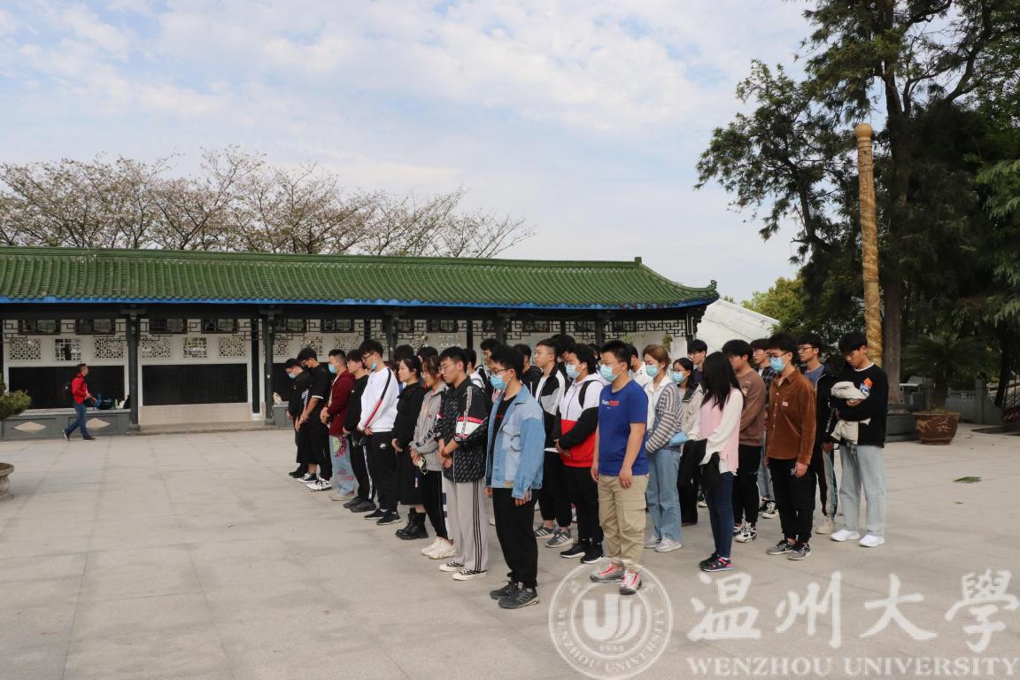 下午13:10,活动正式开始。团学成员们携带横幅,前往国旗广场,怀着激动的心情,认真听取曾蓓蕾书记对大家的期待和建议。曾书记提出,此次新青年下乡是2021年度红色实践活动的开始,希望同学们认真对待,并在今后的道路上发挥自己的专业特长,为社区建设做一份贡献。曾书记讲话完毕后,团学成员于温州大学东大门,乘车前往瑞安。下午14:00左右,团队抵达瑞安国旗馆。馆内陈列了中国各个时期的文献以及照片资料,团学成员们怀着认真学习的态度,将馆内每层陈设的物件一一观摩。国旗馆之旅使团学成员们对国旗背后的故事有了更深层次的了解。参观完毕后,大家在馆外进行了合影留念。14:50左右,我们抵达了第二站——烈士陵园。在陵园内,我们通过参观文献记录学习革命历史,并以默哀一分钟的方式缅怀先烈。