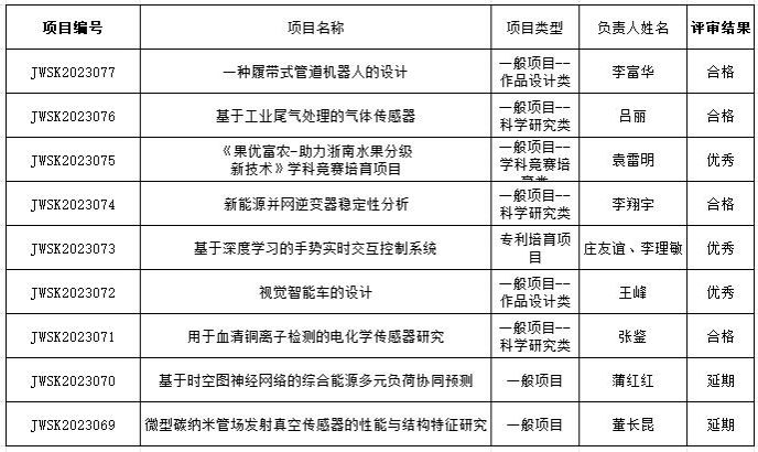 根据《温州大学实验室开放项目资助基金使用和管理办法(试行)》(行政〔2007〕71号)和《关于做好温州大学2023年度实验室开放项目结题工作的通知》的精神。现将2023年度实验室开放项目结题结果予以公示,公示至6月5日。如有疑问,请及时与教学科联系,联系人:张霞,联系电话:86689020。
