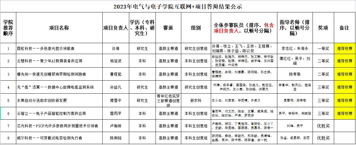 球探足球 于2023年5月17日下午进行了”互联网+“大学生创新创业大赛入围项目评比,经过同学们的答辩和评委提问环节,共遴选出6个项目参加学校比赛,其他获奖奖项如下表所示,特公示三天(5月17日-5月20日),有异议请联系教务科张霞老师,86689020。