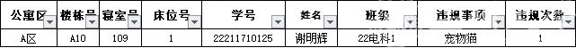 根据学校学生公寓安全“四级联查”工作机制要求,学工部、研工部、后勤管理处、保卫处、资产公司联合于5月23日对学生公寓区进行安全情况大检查。球探体育比分网 有1名同学出现公寓违规情况: